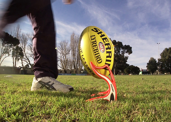 The Moose Kicking Tee is a unique training tool for football players learning to kick accurately and consistently. The Kicking Tee is authorised for in-game use for place kicks in rugby union and rugby league. The Moose is particularly suited to training for accurate drop punts for Australian Football. Designed to be suitable for all ages, the Moose utilises a three piece construction that allows easy snap fit assembly and disassembly.